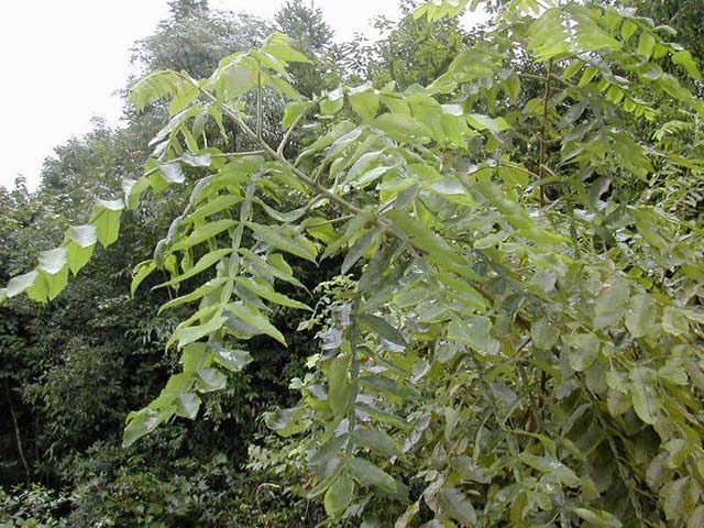 鹽膚木 是漆樹科,鹽膚木屬落葉小喬木灌木,高可達(dá)10米;小枝棕褐色,葉片多形,卵形或橢圓狀卵形或長(zhǎng)圓形,先端急尖,基部圓形,頂生小葉基部楔形,葉面暗綠色,葉背粉綠色,小葉無(wú)柄。圓錐花序?qū)挻螅喾种Γ苹ㄐ蜉^短,密被銹色柔毛;苞片披針形,花白色。
