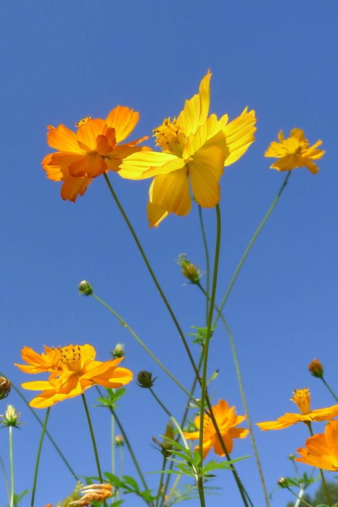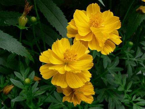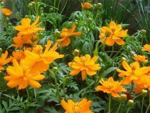 生活習(xí)性:硫華菊喜陽光充足,不耐寒。多分枝,葉為對生的二回羽狀復(fù)葉,深裂,裂片呈披針形,有短尖,葉緣粗糙,與大波斯菊相比葉片更寬。春播花期6-8月,夏播花期9-10月。